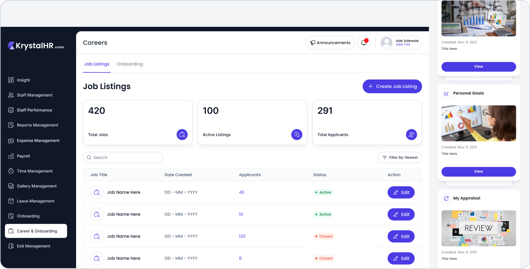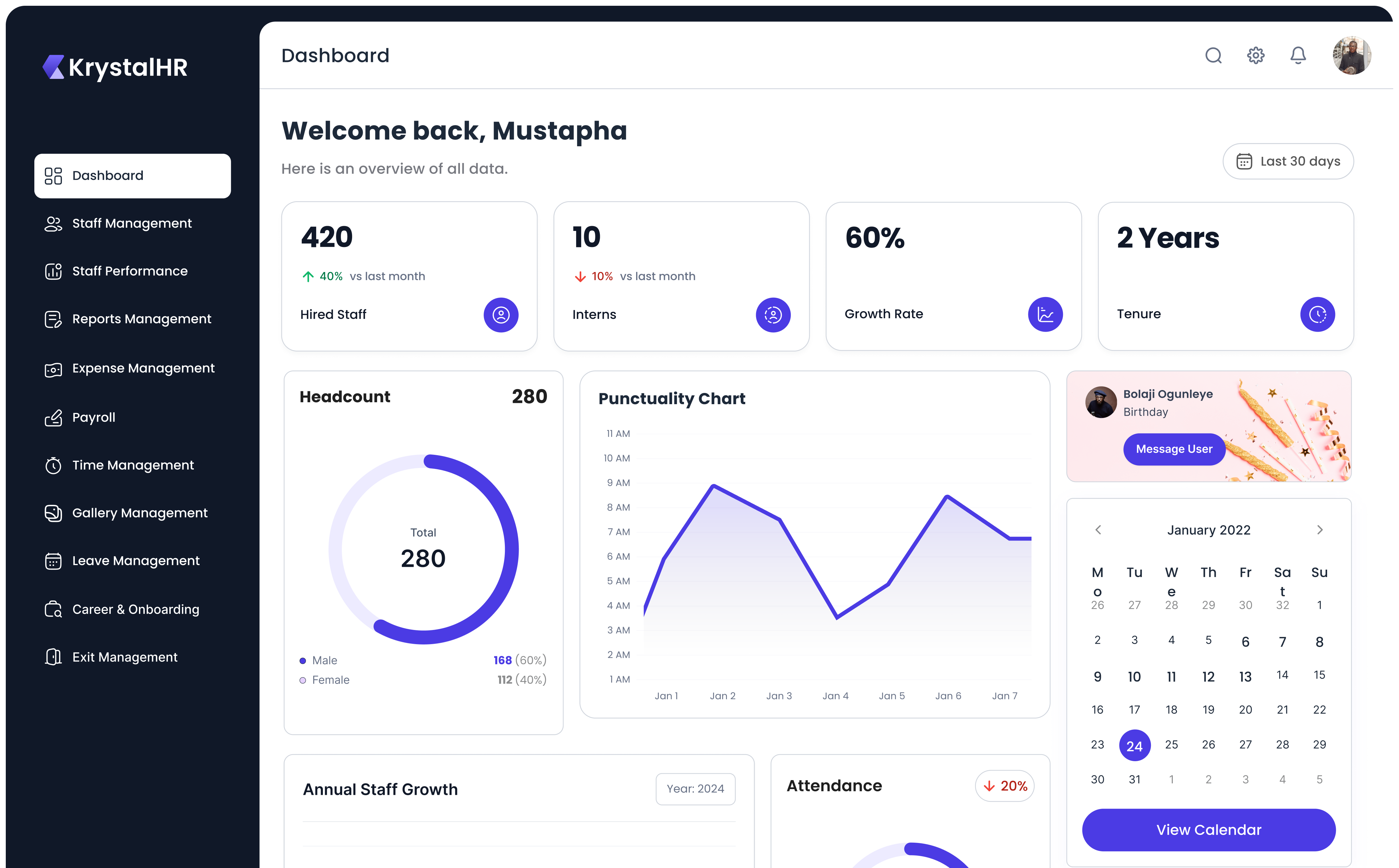 Enhance company culture with tools designed to gather feedback, track performance, and support professional growth. KrystalHR empowers employees with career development resources while helping organizations improve retention.