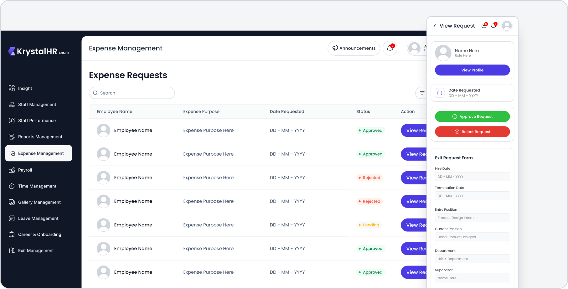 KrystalHR streamlines requisition management, ensures accurate tracking, and automates approval workflows so you can efficiently secure the resources needed to grow your business.